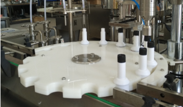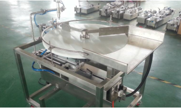 זה מזין את הבקבוקים למכונת המילוי בזה אחר זה.